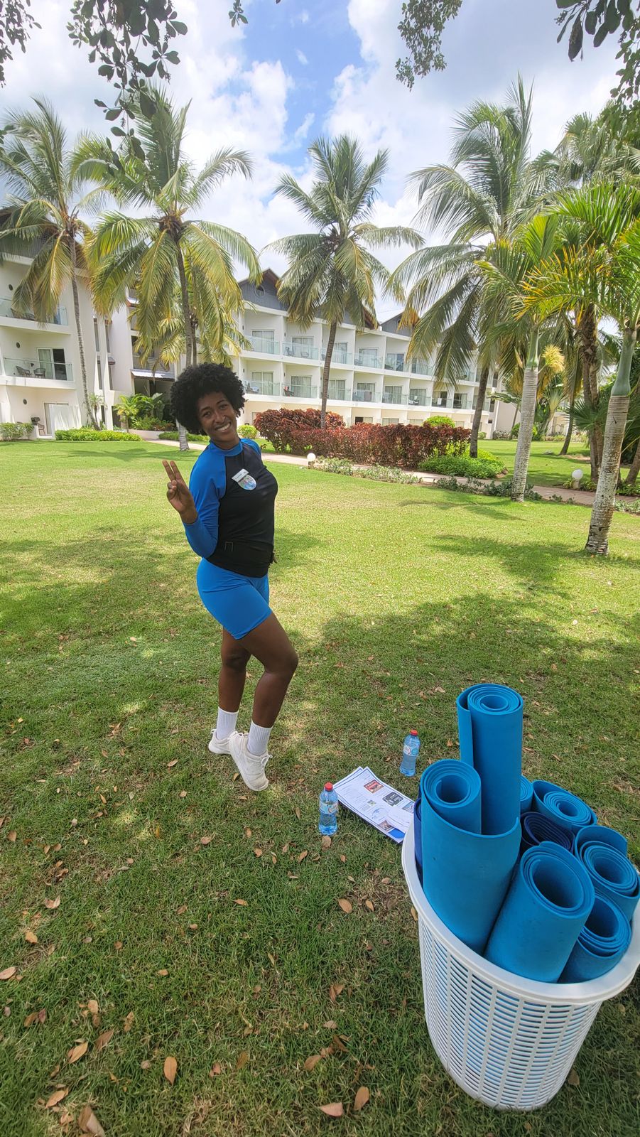 Now, I have already mentioned this, but I am a planner. I like to know what is going on so that I can be prepared. The element of not knowing my schedule prior to the trip was probably the most stressful part of the whole trip (and really, the trip was amazing and NOT stressful). When my husband and I arrived on Sunday afternoon to check in, I did let them know that I was the yoga teaching professional for the next week. They attempted to call for the manager (Maria) or assistant manager (Dari), but neither were available at that time and then said to meet in the adult side lobby at 8:30pm. Fast forward to 8:30pm, my husband and I are sitting in the hotel lobby sipping on a tropical beverage but no one arrives. Now I am starting to feel a bit anxious. In my head I am thinking “Ummm, what am I supposed to do tomorrow? Where am I supposed to go?” So I let the front desk know that I was waiting for Dari. They let me know she was still unavailable and tending to some of the evening events taking place on the property. They told me “Just be ready at 8:30am in front of the spa in the grassy area. In all honesty, this is not the way I would prefer to start my week, BUT I remained full of gratitude for this unique opportunity and had full confidence that I would gain more clarity in my expectations. And in fact I did, after my first class. I learned that my scheduled would “generally be” the following:
